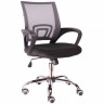 Современное кресло для персонала, с сетчатой спинкой, хромированной крестовиной и механизмом качания.