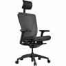 Современное эргономичное кресло Schairs AEON - M01B , в сетке с тканевым сиденьем, с классическим черным каркасом.